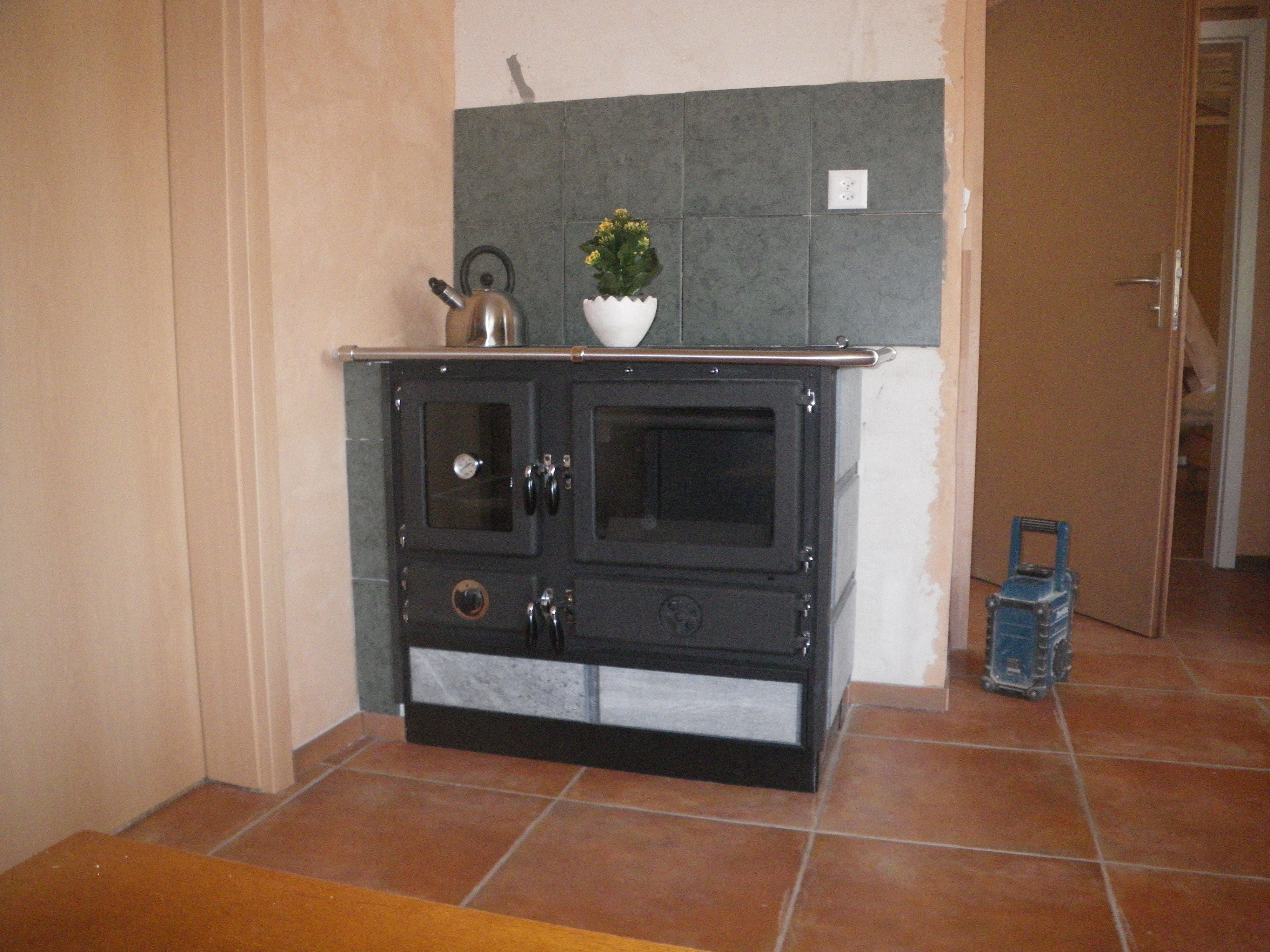 cuisinière à bois en plus de la cuisine agencée. Avec toutes les